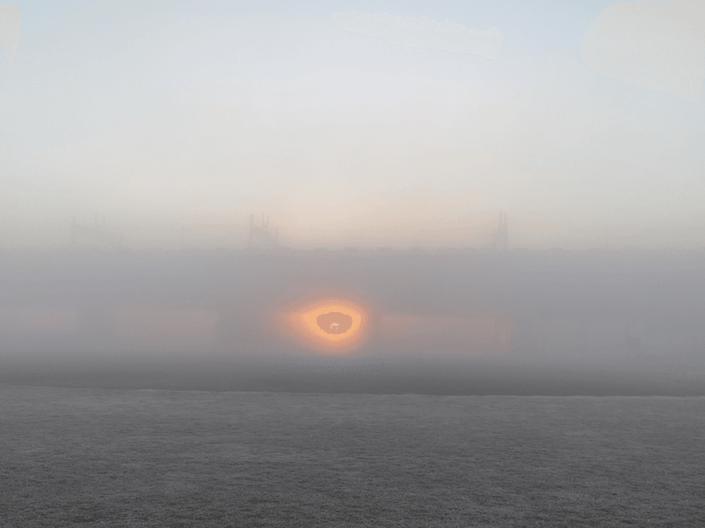 物凄い霧だ。朝焼けどころではない。