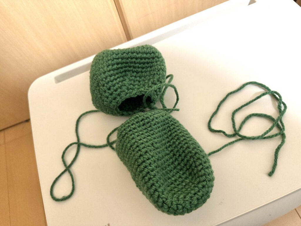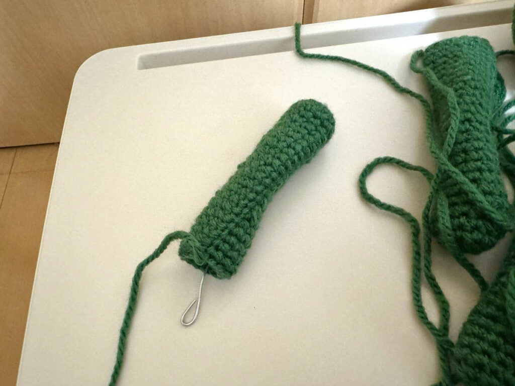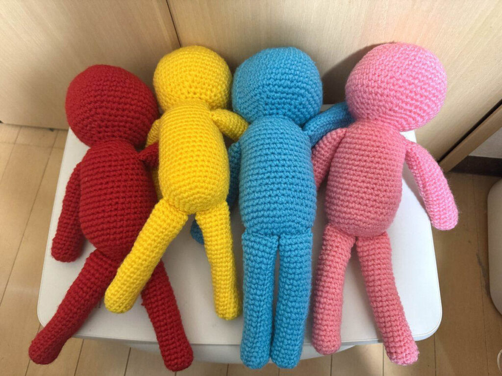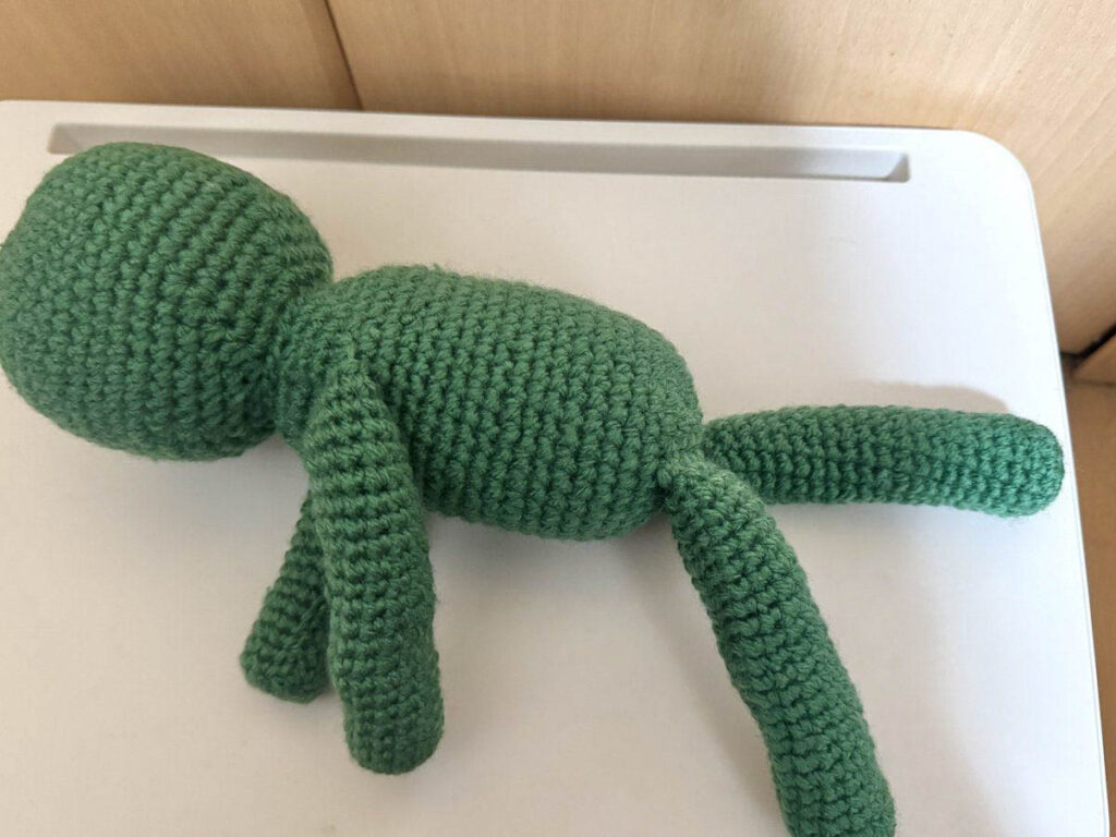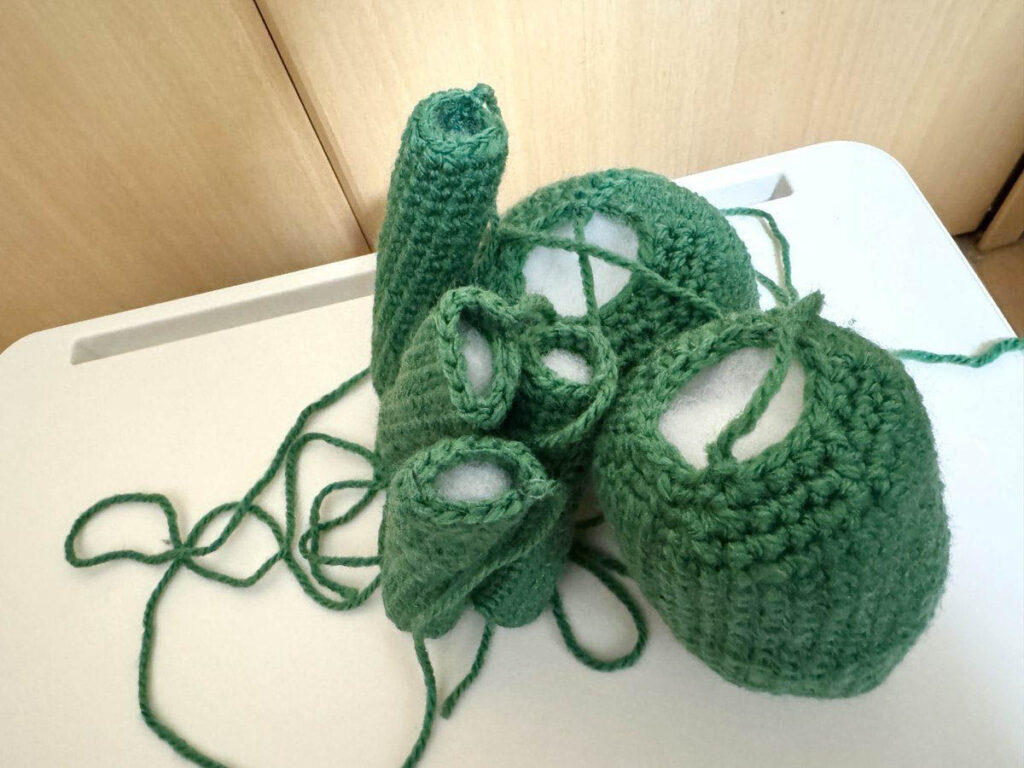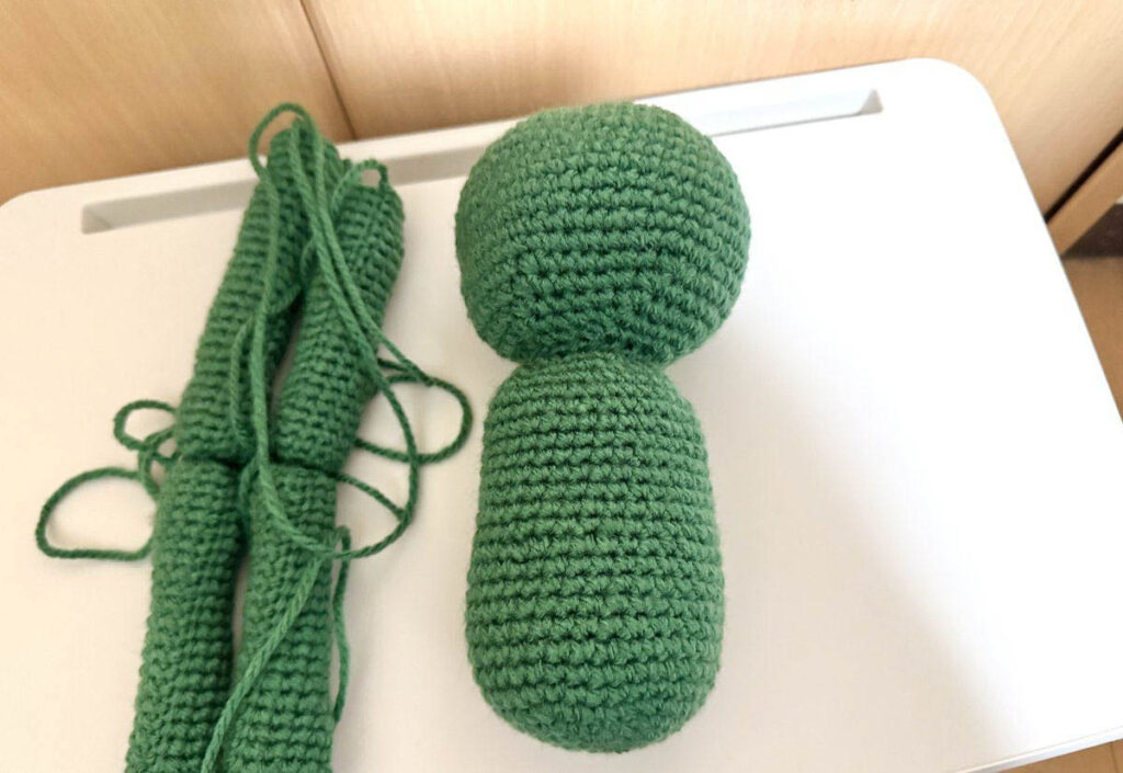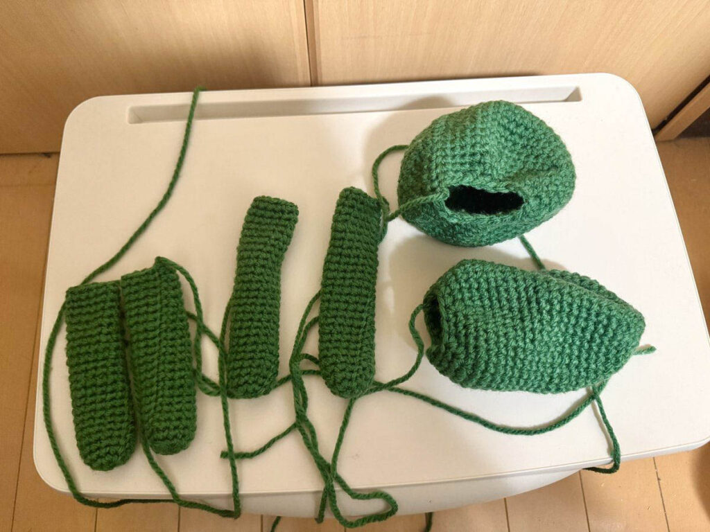 手足パーツも完成。同じ形を4つ編むのは少し飽きました。