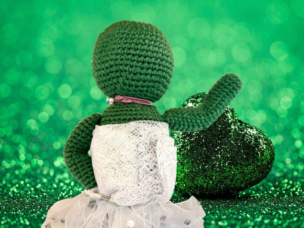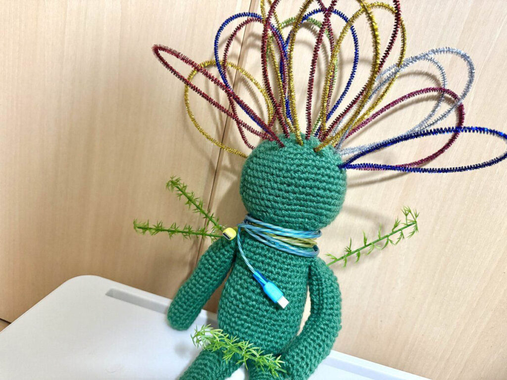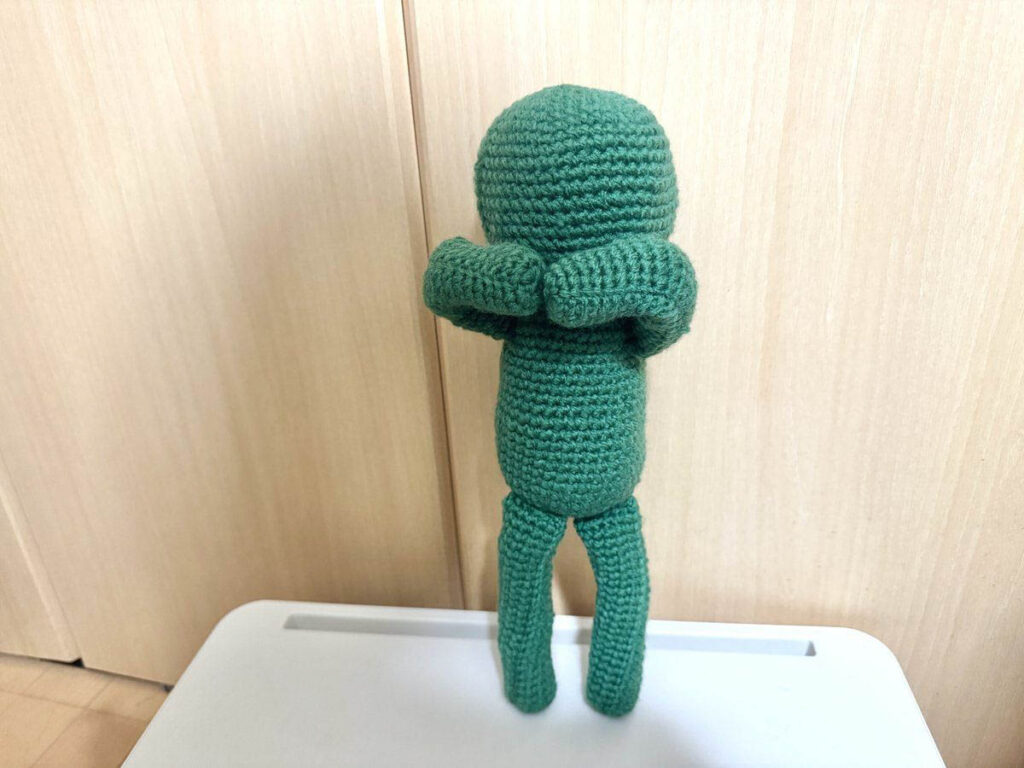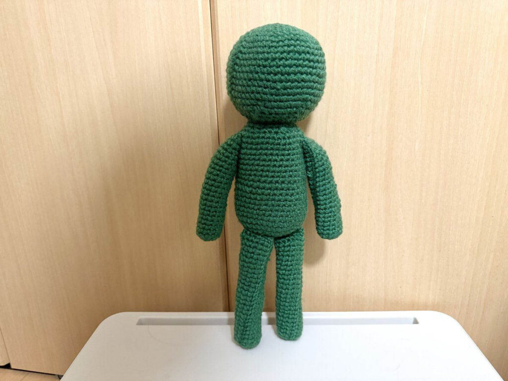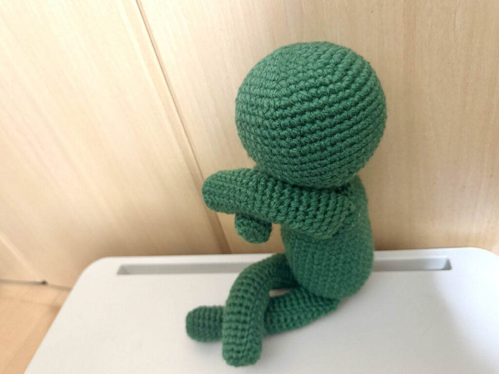 緑の人はシンプルな形状なので、わりと簡単に編めそうです。
