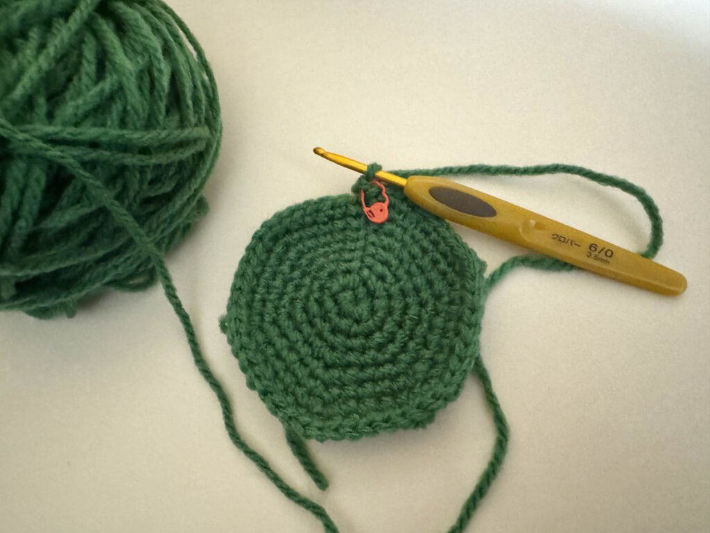 最初に平面を編んで、それから立体にしていきます。